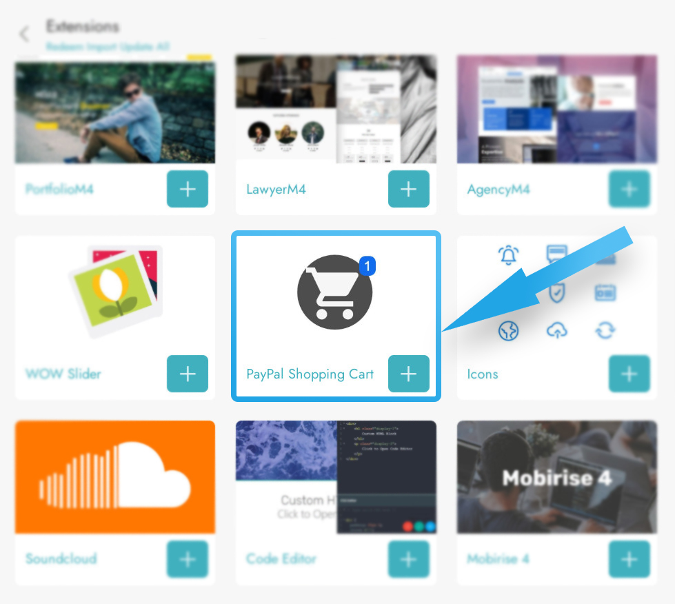 To add the extension to your Mobirise, follow simple steps from the email you received after the purchase. After installing, the extension adds PayPal Cart switch to link parameters.